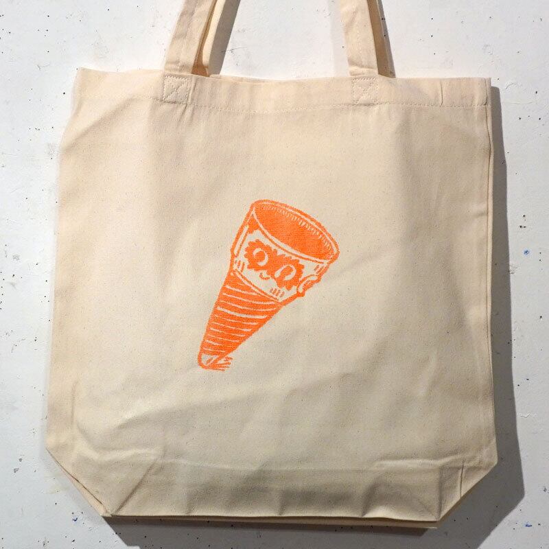 『233大うんこ展』オフィシャルトートバッグ。イラストレーター・sorao氏&233のコラボトートです。表面には”うんこ”か”ソフトクリーム”かとっちかわからない状態のものがプリントされていて、裏面には”トイレットペーパー”(うんこ確定)か、”ソフトクリームのコーン”(ソフト確定)のどちらかがプリントされています。
